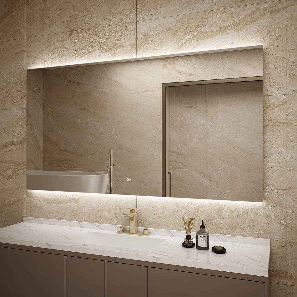 กระจก LED รูปทรงสี่เหลี่ยมผืนผ้า ได้รับการรับรองมาตรฐาน CE - พร้อมไฟส่องหลังและระบบไล่ฝ้า สำหรับตลาดยุโรป