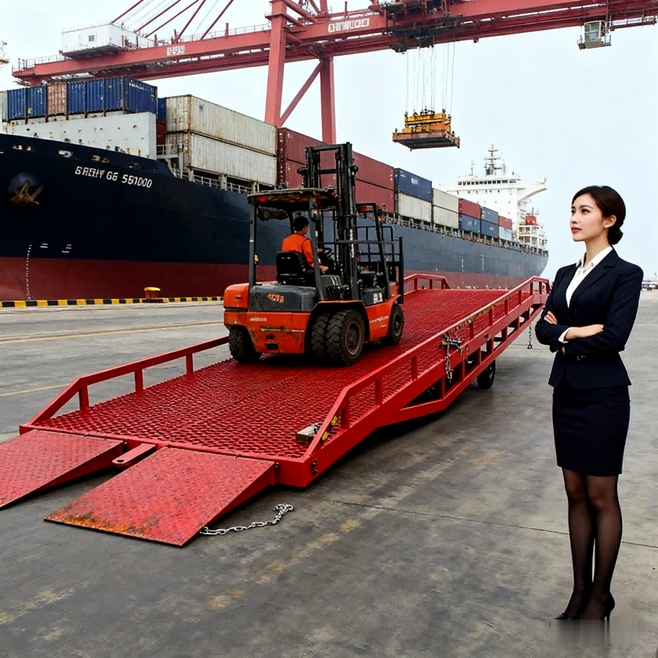 สะพานขึ้นเครื่องสำหรับการขนถ่ายไฮดรอลิกมือถือที่ปรับได้ CE ISO ได้รับการรับรองจาก ISO 6T 8T 10T 12T 15T