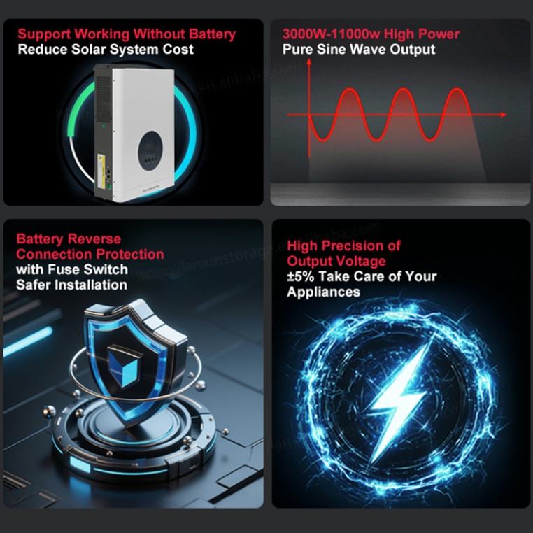 CE ROHS FCC Certified Off Grid Hybrid Mppt Pure Sine Wave Power 1.6KW 3KW 5KW 6.4KW 8KW 10KW All in One Indoor Solar Inverter