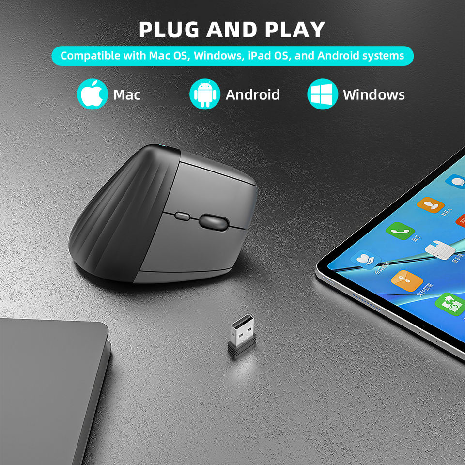 เมาส์ไร้สาย CE ROHS แบบยกแนวตั้งตามหลักสรีรศาสตร์ คลิกเงียบ 6 ปุ่ม ออปติคอล USB สำหรับ Windows/macOS/iPadOS PC