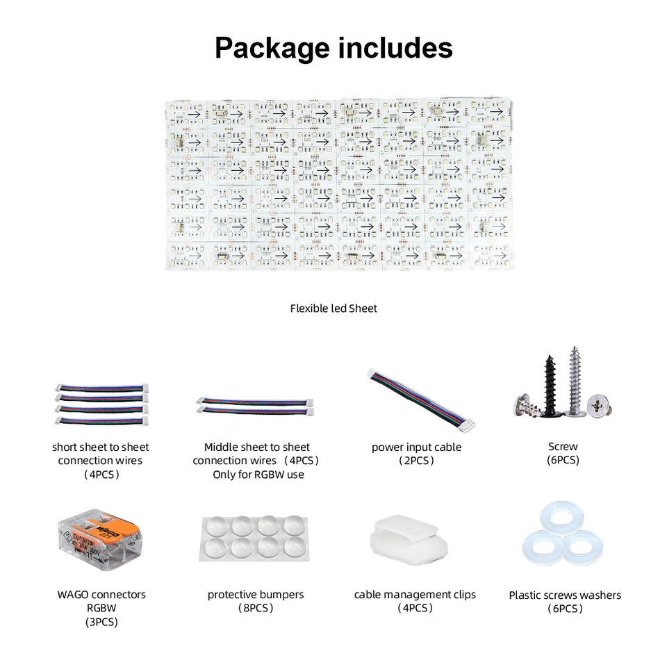 แผงไฟ LED RGBW แบบยืดหยุ่น ได้รับการรับรองมาตรฐาน CE/RoHS - ไฟ LED คุณภาพสูง 288 ดวง DC24V 30W CRI>90 สำหรับตกแต่งหินในโรงแรม/ที่อยู่อาศัย