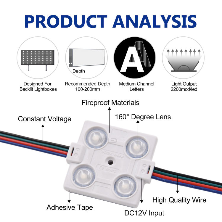 ชื่อผลิตภัณฑ์:โมดูลไฟ LED RGB แบบฉีดขึ้นรูป กันน้ำ 1.44W พร้อมไฟพื้นหลัง สำหรับป้าย