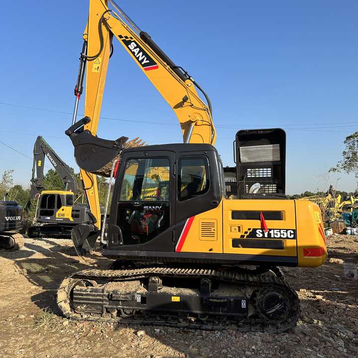 รถขุดไฮดรอลิกแบบตีนตะขาบ Sany Sy155 มือสอง ขนาด 15.5 ตัน ได้รับการรับรองมาตรฐาน CE เครื่องยนต์ Isuzu ปั๊มคุณภาพดี ราคาดี