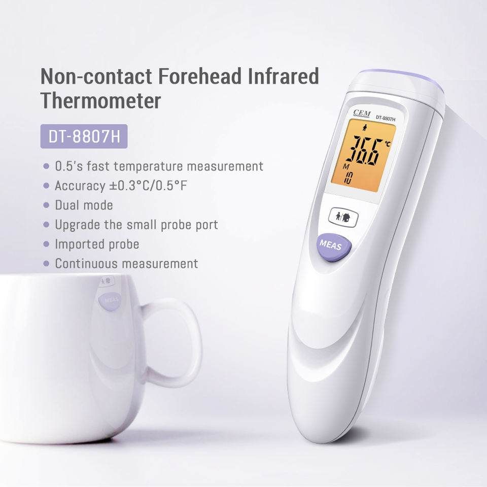 เครื่องวัดอุณหภูมิอินฟราเรดบริเวณหน้าผากทางคลินิกแบบไม่สัมผัส DT-8807H ใช้ด้วยมือสามารถเลือกได้สำหรับเด็ก