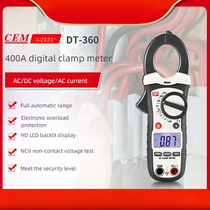 เครื่องหนีบดิจิตอล CEM สำหรับวัดแรงดันไฟฟ้า ac/dc DT-360มิเตอร์วัดกระแสดิจิตอลความแม่นยำสูง