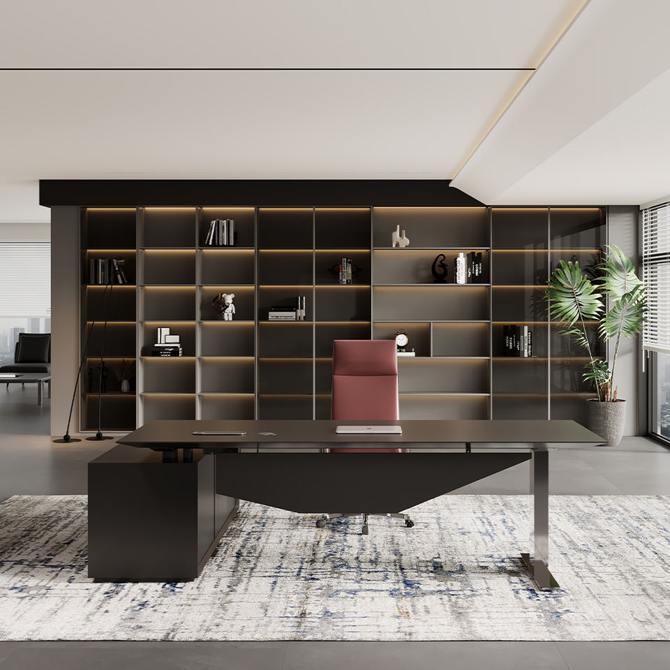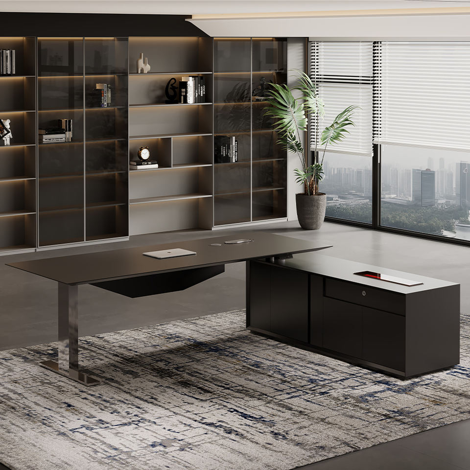 โต๊ะทำงานผู้บริหารรูปตัว L พร้อมเก้าอี้นั่งสบายสำหรับซีอีโอ หัวหน้า และผู้บริหาร