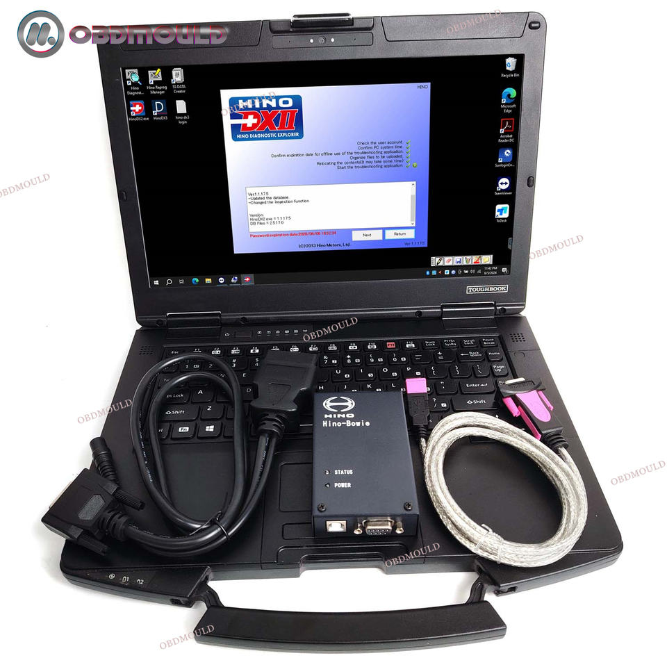 CF54แล็ปท็อปรุ่น V3.1.6สำหรับ Hino DXII เครื่องมือสแกนเนอร์รถบรรทุกสาย OBD2 Hino-BOWIE DX