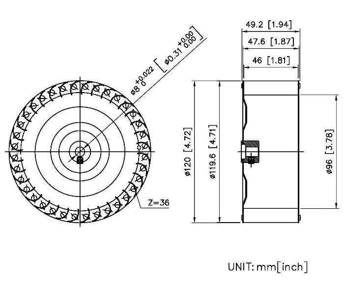 พัดลมดูดอากาศแบบแรงเหวี่ยงหลายใบพัด รุ่น CFW12046A Symabng สำหรับเตาอบอุณหภูมิสูง ผลิตจากอลูมิเนียมอัลลอย เสียงเบา ใช้ไฟฟ้ากระแสสลับ