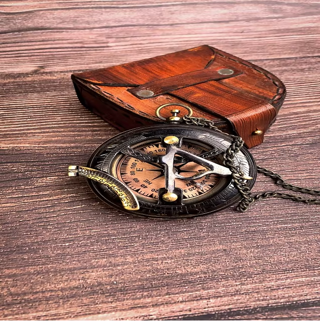 เข็มทิศทองเหลืองขัดเงาแบบโบราณ ของขวัญวันฮาโลวีน ของตกแต่งบ้าน งานฝีมือคาลวิน จากอุทารัคชานด์
