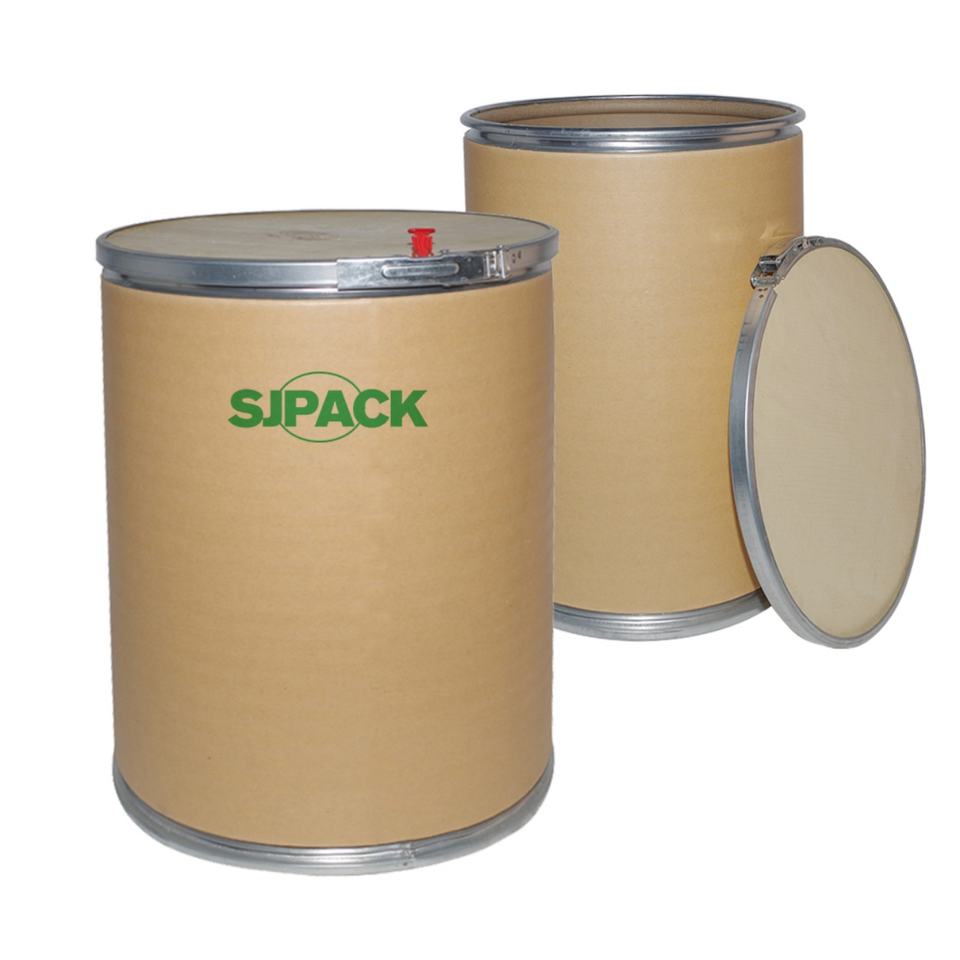 ถังไฟเบอร์ CH SJPACK ขนาด 25 กก. สีน้ำตาล รีไซเคิลได้ เป็นมิตรกับสิ่งแวดล้อม ความจุ 45 ลิตร เกรดสำหรับอาหาร พร้อมวงแหวนโลหะชุบสังกะสี เส้นผ่านศูนย์กลาง 36 ซม. สูง 50 ซม.