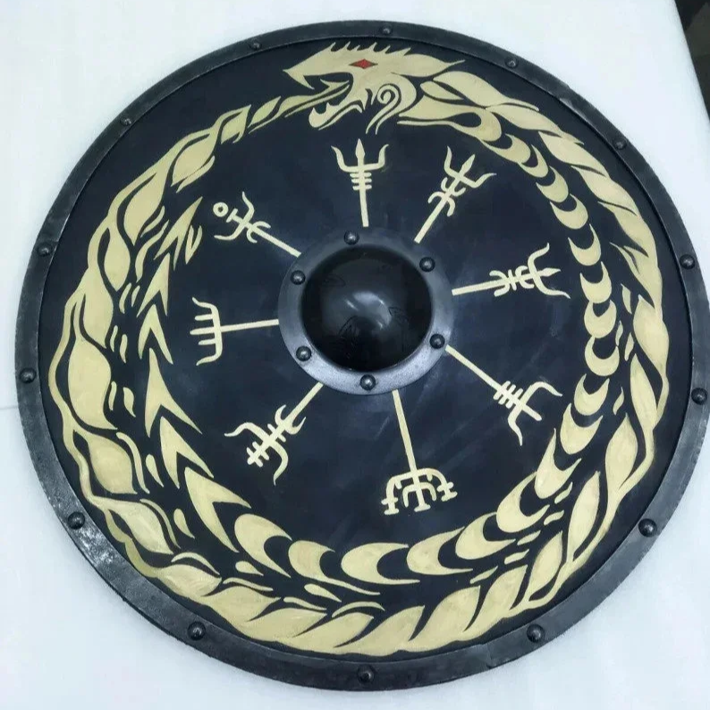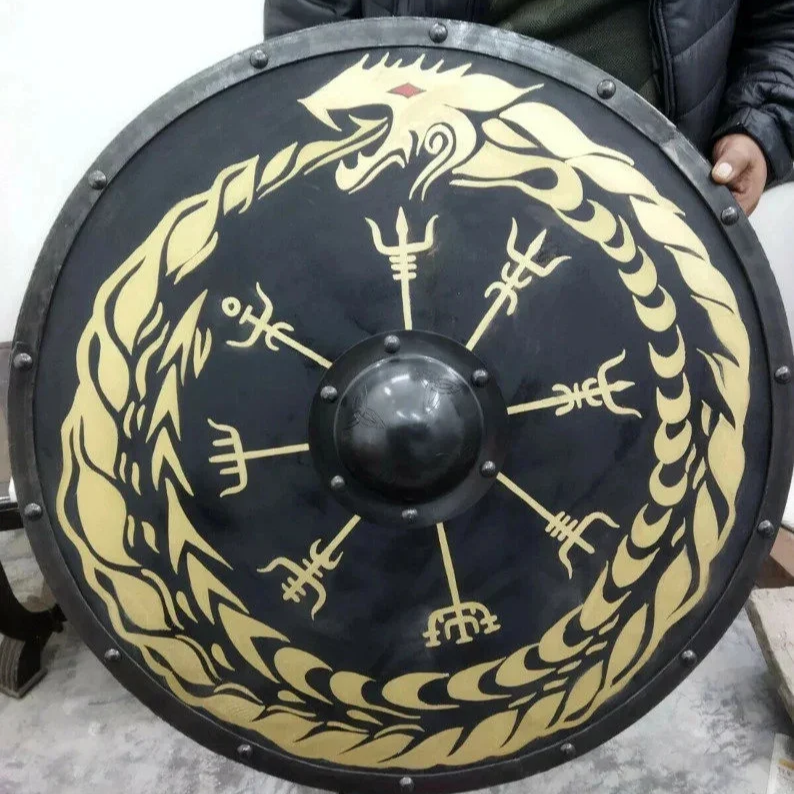 CH Viking Shield Antique Painted Wooden Round Halloween Decoration Gift for Viking Cosplay by Calvin Handicraft