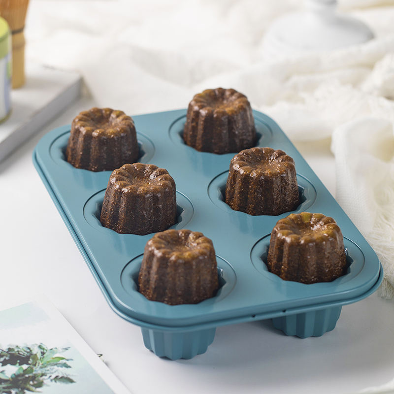 พิมพ์เค้กเหล็กกล้าคาร์บอนเคลือบสารกันติด CHEFMADE WK10047 สีเขียว ขนาด 6 ถ้วย สำหรับอบขนมในเตาอบ แบบพิมพ์คานเนลและมัฟฟิน