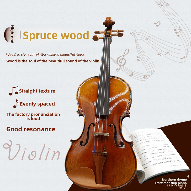 ชุดไวโอลินไม้เนื้อแข็งสำหรับผู้เริ่มต้นลายสีน้ำตาลด้านขนาด4/4