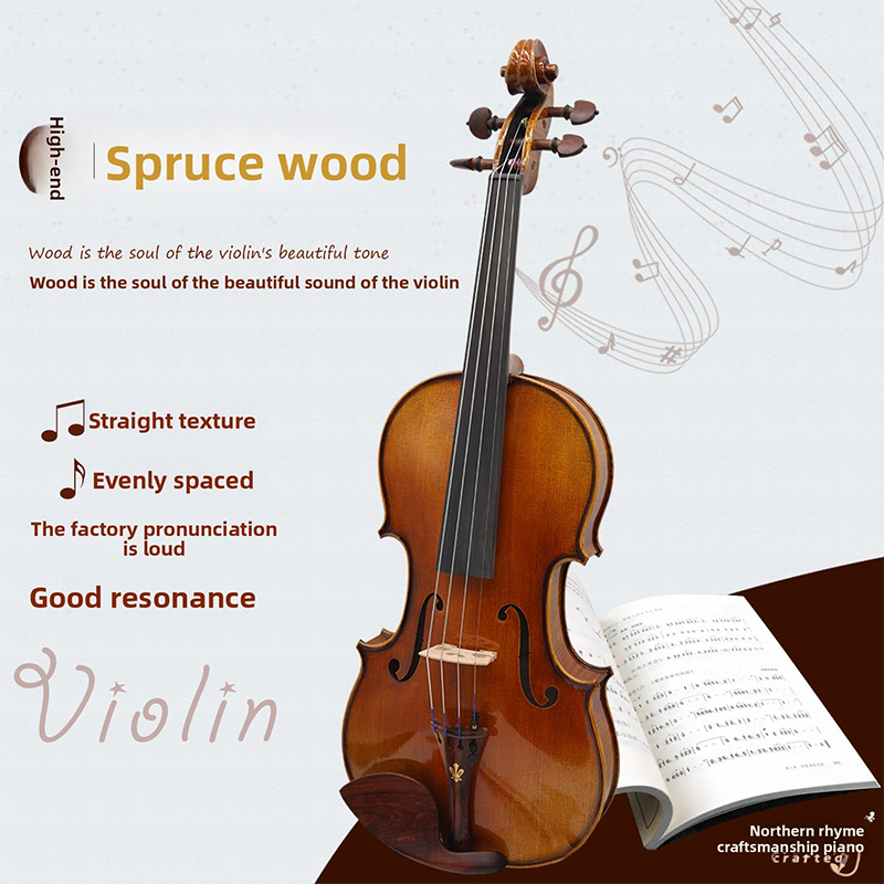 ชุดไวโอลินไม้แท้ขนาด 4/4 ลายสีน้ำตาลเงา สำหรับผู้เริ่มต้น