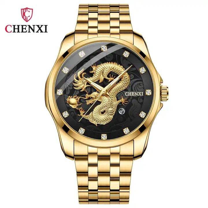 Chenxi นาฬิกาข้อมือธุรกิจของผู้ชาย CX-8220สไตล์รุ่งอรุณจีนพร้อมจอแสดงผลปฏิทินสลักลายมังกรกันน้ำ