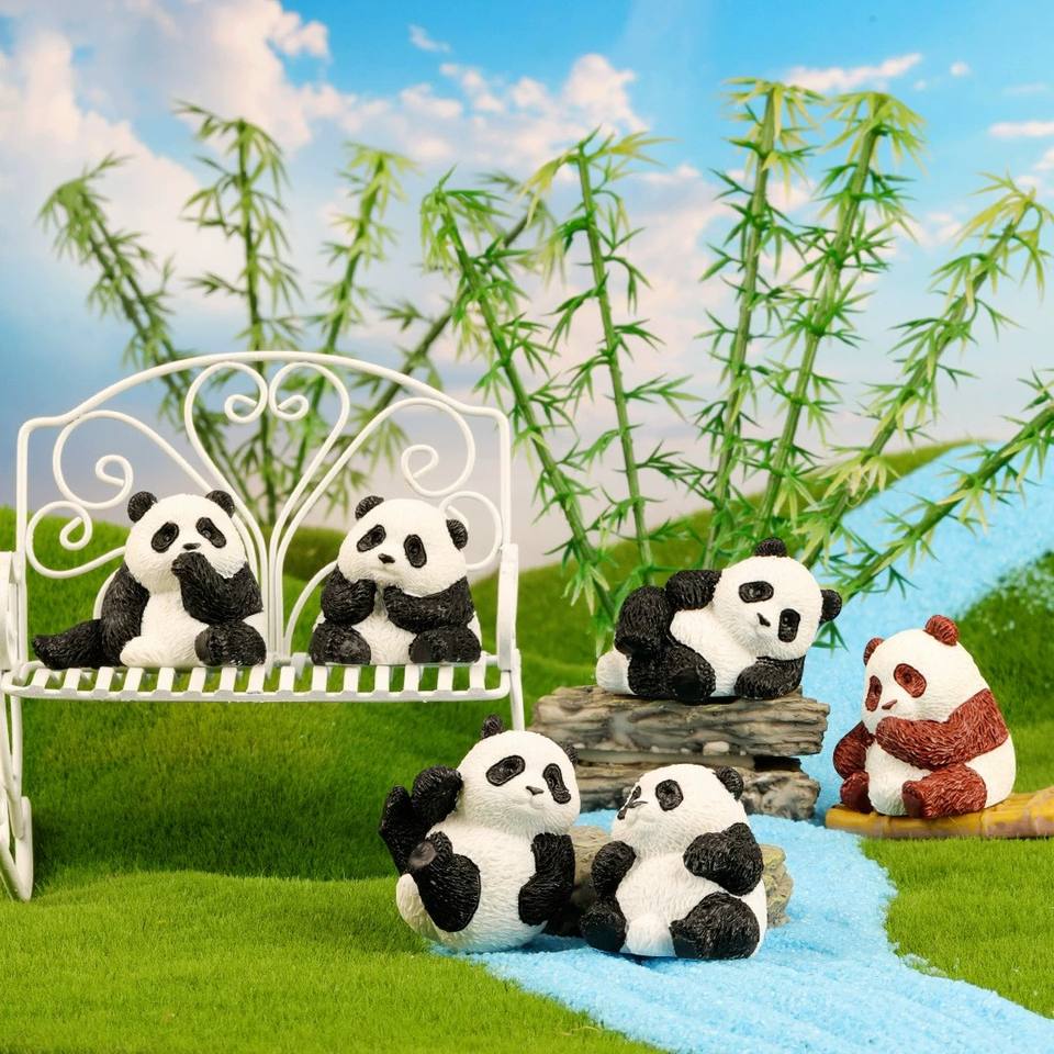 Chenxi ตุ๊กตาเรซินแพนด้าขนาดเล็ก, เครื่องประดับตกแต่งภายในรถยนต์แม่พิมพ์เรซินรูปแพนด้าจิ๋วตกแต่งภูมิทัศน์3D
