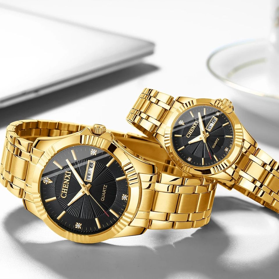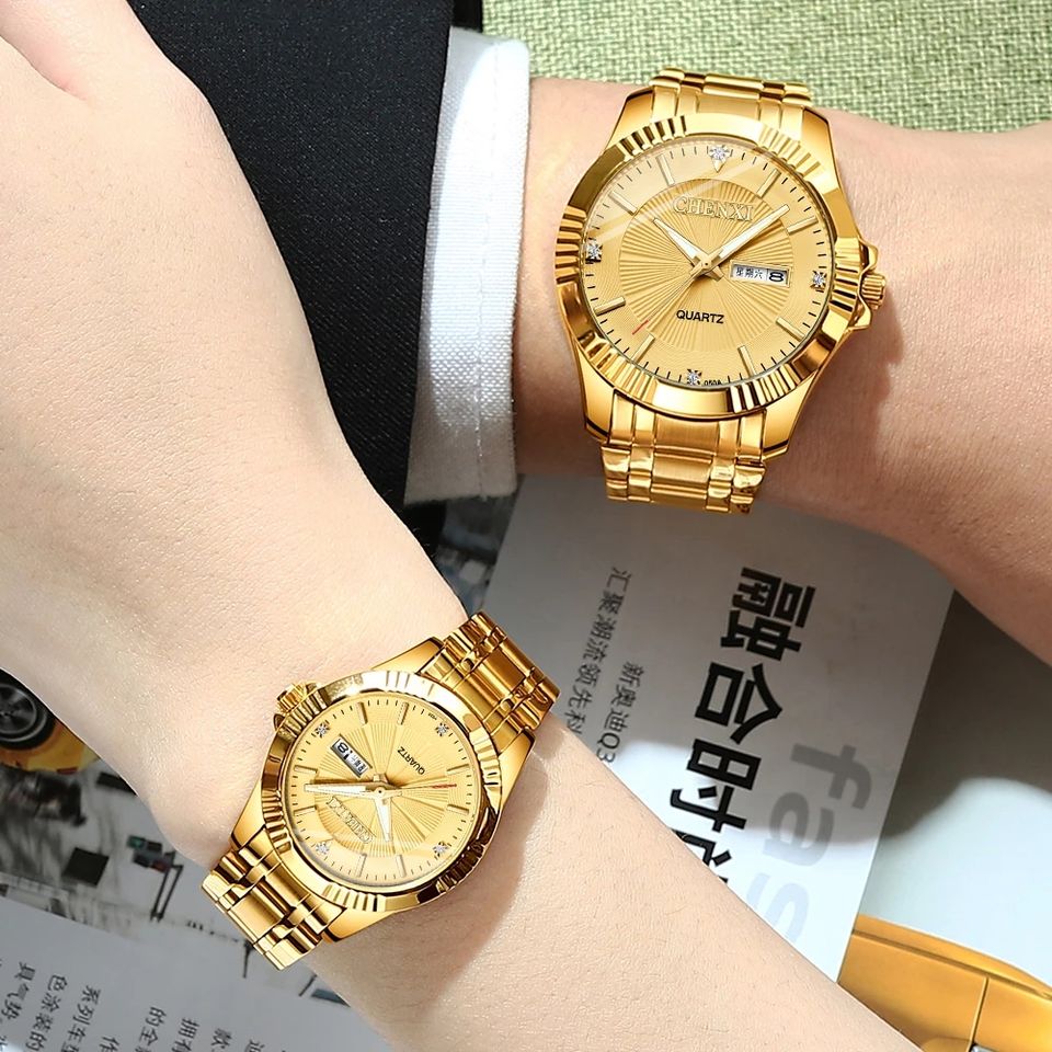 นาฬิกาข้อมือผู้ชายสีทองผู้ชาย, นาฬิกาข้อมือควอตซ์สแตนเลสคลาสสิกสีทองกันน้ำแสดงวันที่อัตโนมัติ