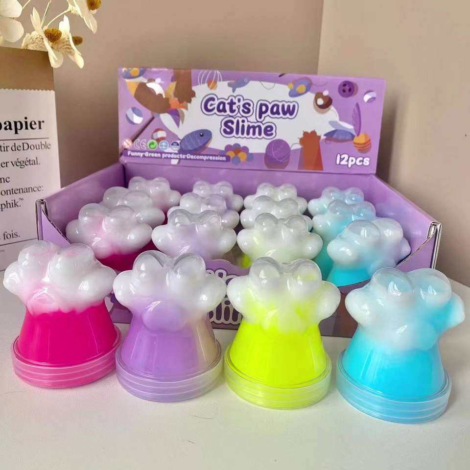 CHENXI ขายส่งสไลม์เนื้อนุ่มรูปทรงเล็บแมว ขนาด 100 มล. สไลม์ไล่สีหลากสี ปลอดสารพิษ ของขวัญสำหรับงานปาร์ตี้ ของเล่นสำหรับเด็ก
