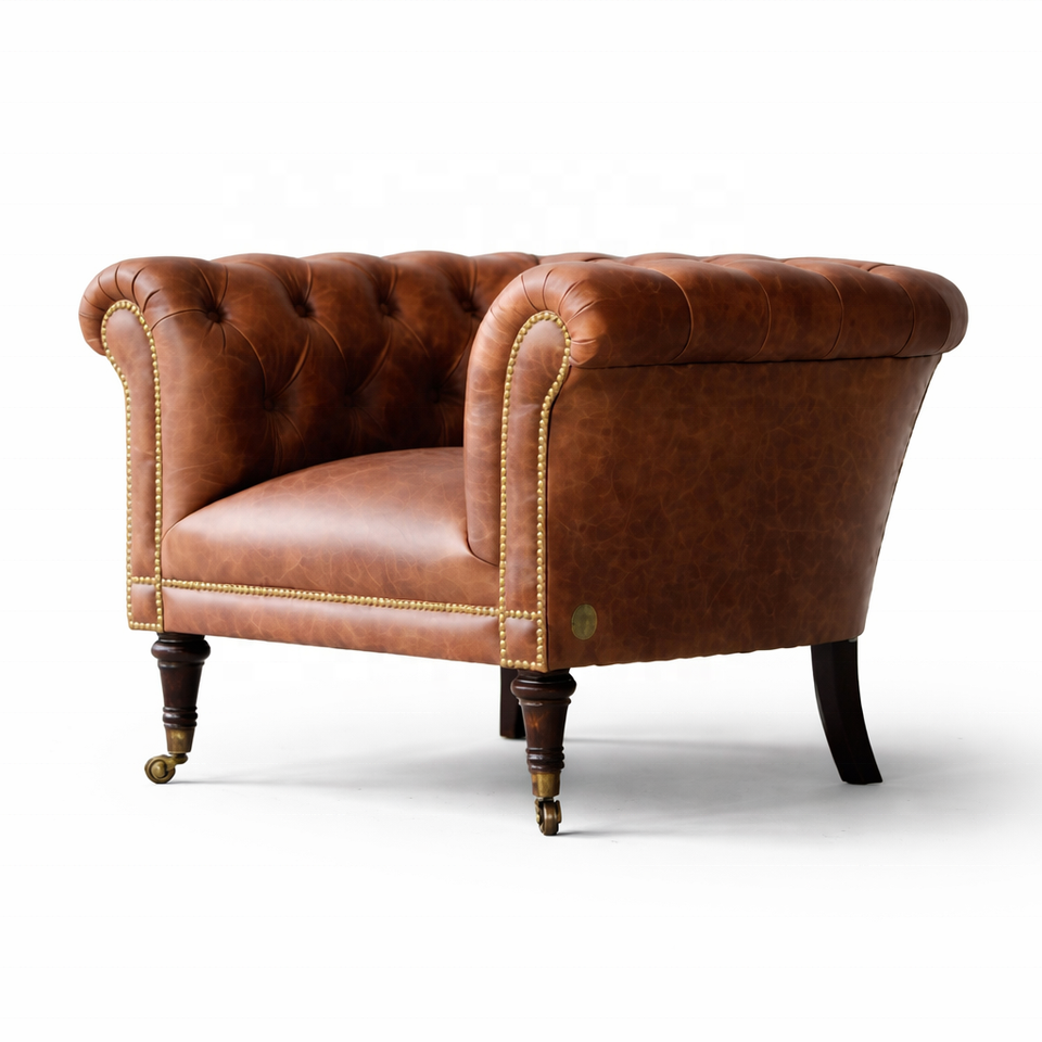 เก้าอี้หนังเชสเตอร์ฟิลด์หลากสี | เก้าอี้คลับวินเทจแบบเดี่ยว สำหรับอพาร์ทเมนต์ วิลล่า ห้องนั่งเล่น โรงแรม