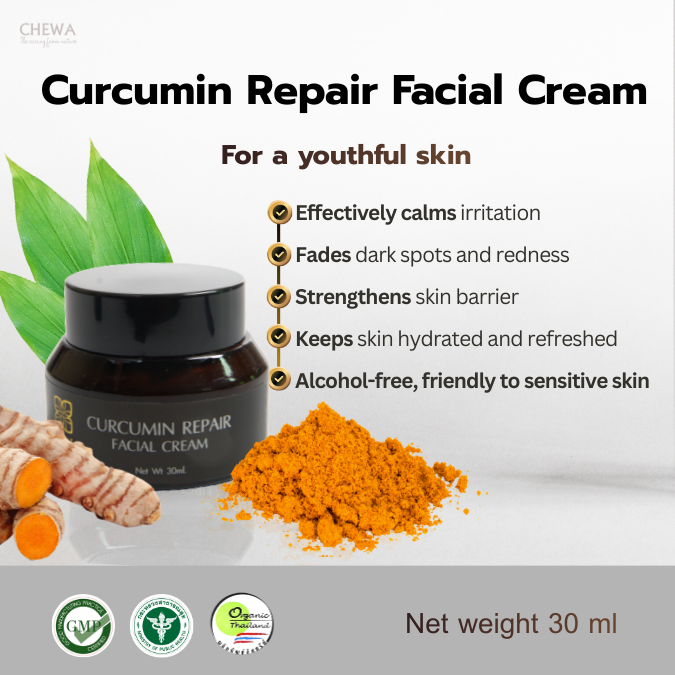ครีมบำรุงผิวหน้า CHEWA เคอร์คูมิน รีแพร์ 30 มล. ขมิ้นชันออร์แกนิคจากไทย ลดจุดด่างดำ รอยแดง ปกป้องผิว ลดการระคายเคือง