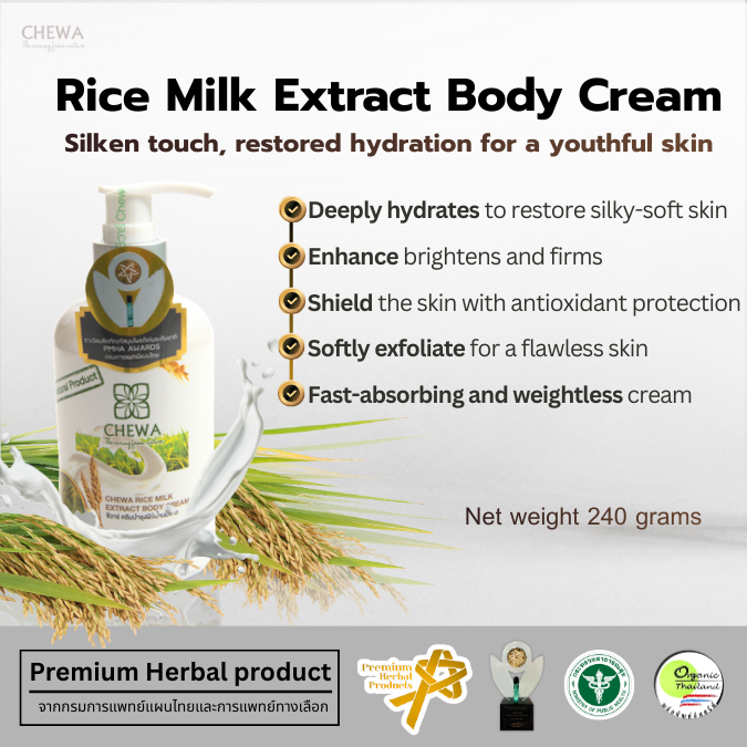 ครีมบำรุงผิวกายสารสกัดน้ำนมข้าวเชวา 240 กรัม จากประเทศไทย ครีมบำรุงผิวธรรมชาติสำหรับทุกวัย สำหรับผิวแห้ง ปราศจากสารเคมีอันตราย