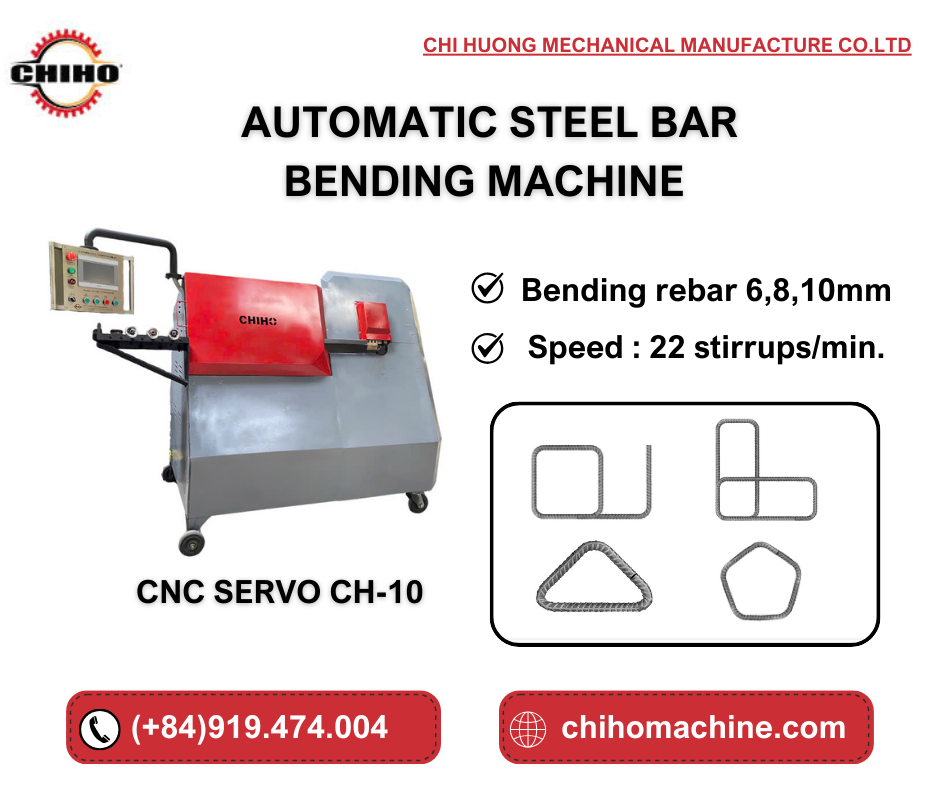 Chiho CH-10เครื่องดัดเหล็กเส้นอัตโนมัติ6-12มม. CNC PLC Rebar Bender สแตนเลสก่อสร้างโกลนเครื่องดัดมอเตอร์เครื่องยนต์