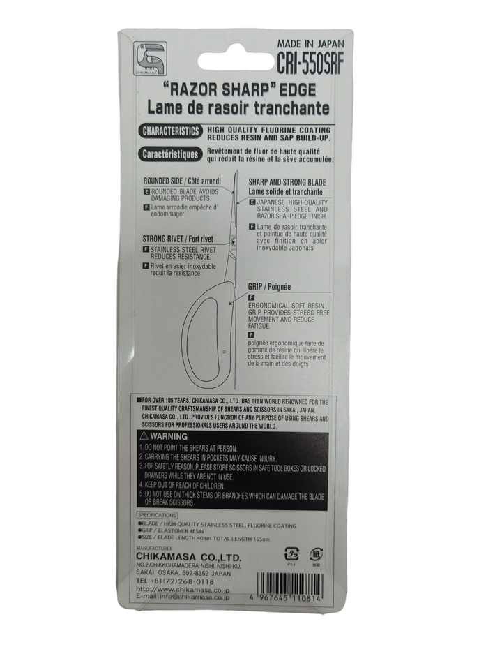 กรรไกรโค้ง CHIKAMASA B-550SRF สีส้ม เคลือบฟลูออรีน สแตนเลสอุตสาหกรรม ด้ามจับพลาสติก บรรจุกล่อง เครื่องมือตัด