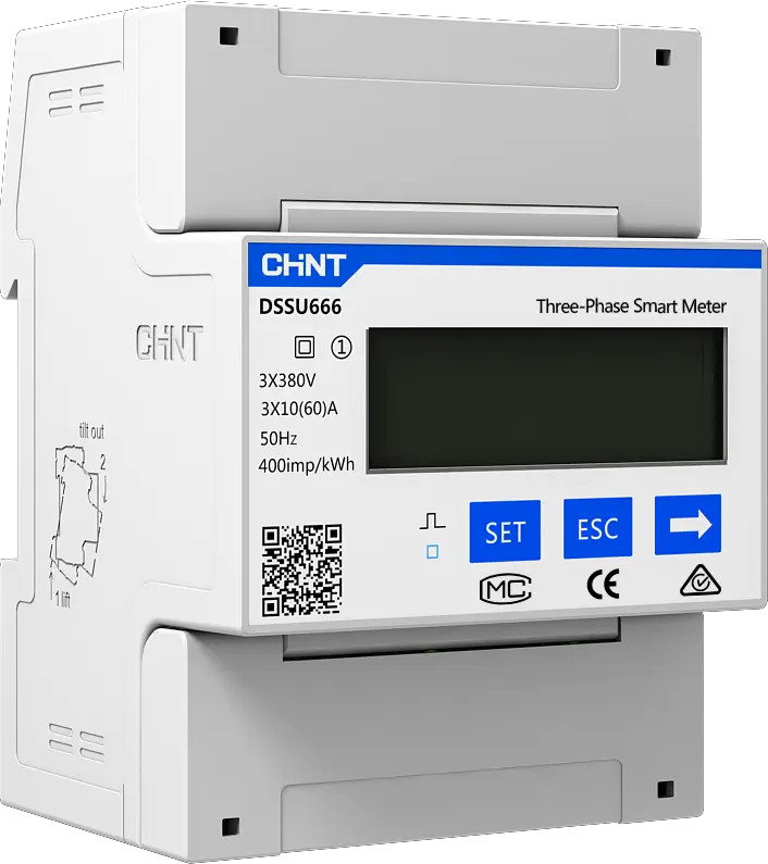 มิเตอร์ไฟฟ้า CHINT DTSU666 แบบสามเฟส ติดตั้งบนราง DIN พร้อมหน้าจอ LCD วัดค่าไฟฟ้าสองทิศทาง ติดตั้งบนราง DIN แสดงผลหน่วยกิโลวัตต์ชั่วโมง
