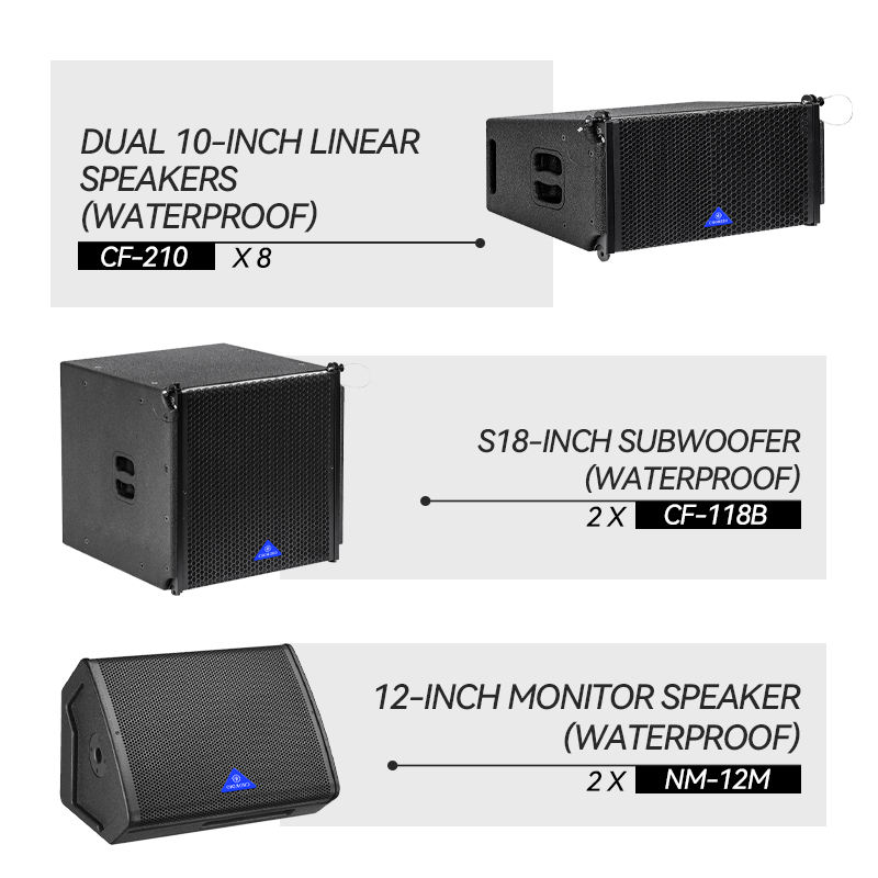 ลำโพงไลน์อาร์เรย์แบบพาสซีฟ CHORDIO CF-210 ขนาด 10 นิ้ว คู่ ระบบเสียงปรับแต่งได้สำหรับเวที สำหรับการแสดงเครื่องเสียง