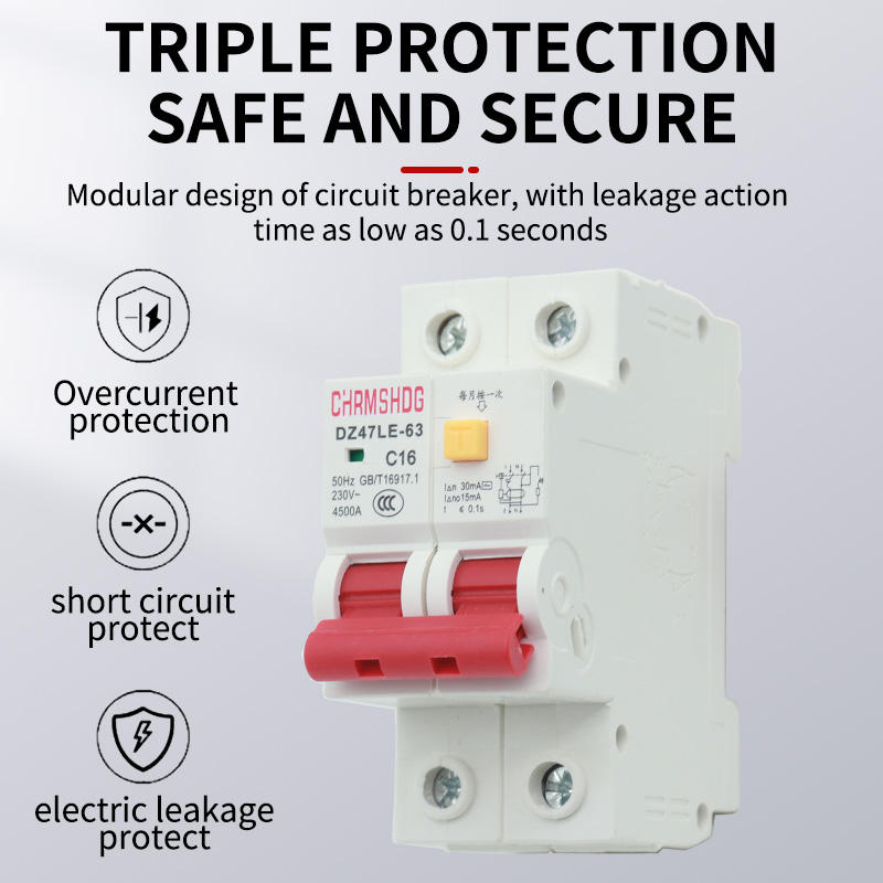 Chmshdg 30mA 2P25A RCBO สวิตช์ป้องกันการรั่วไหลขนาดเล็ก RCBO 2 P เบรกเกอร์สอง DZ47LE สวิตช์เบรกเกอร์ทั้งหมด