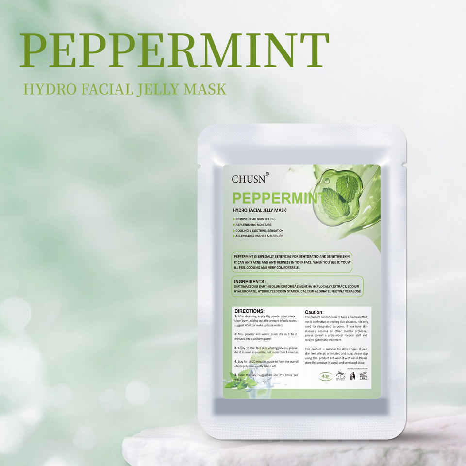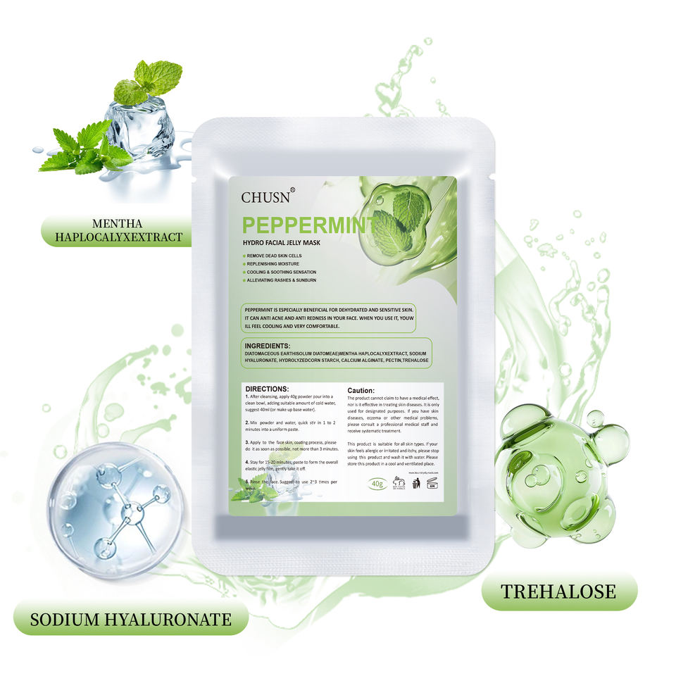 มาส์กเจลลี่ทำความเย็นและฟื้นฟูจาก Chusn สำหรับสปาร้านเสริมสวยผลิตภัณฑ์ดูแลผิวให้ความชุ่มชื้นและกระชับฉลากส่วนตัวที่กำหนดเองสูตรสารสกัดมิ้นท์