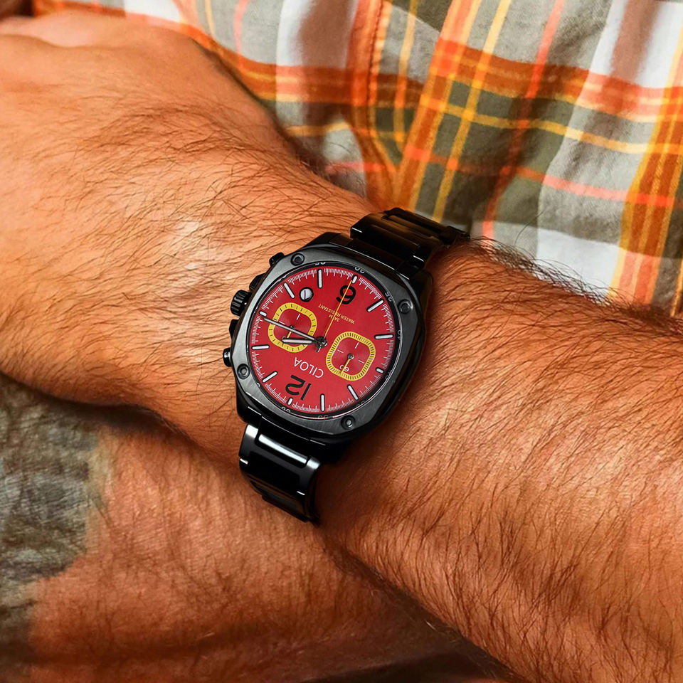 นาฬิกาข้อมือผู้ชาย CILOA สีแดง ทรงกลม ปรับแต่งได้ หรูหรา คุณภาพสูง ฟังก์ชั่นหลากหลาย หน้าปัดขนาดใหญ่ กันน้ำ นาฬิกาควอตซ์สำหรับผู้ชาย