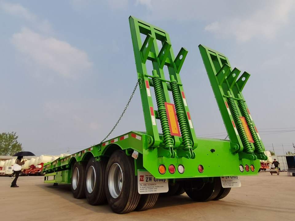 CIMC 4เพลา5เพลา80T 100ตันรถพ่วงตู้คอนเทนเนอร์เตียงต่ำเด็กชายต่ำ Lowbed กึ่งรถบรรทุกพร้อมบันไดไฮดรอลิก