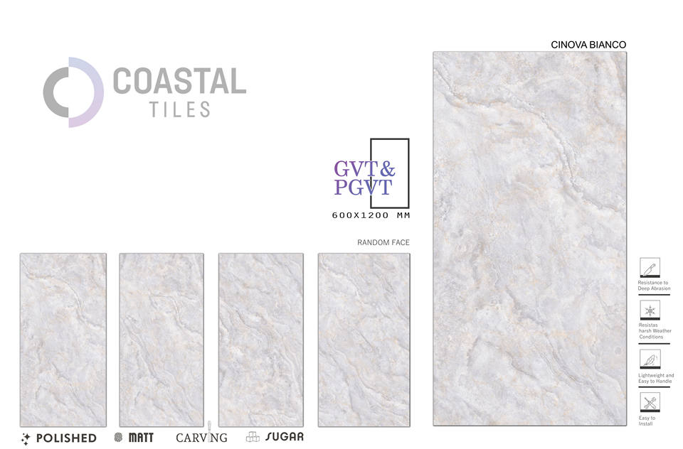 กระเบื้องพอร์ซเลน CINVA GREY ขนาด 600x1200 มม. ผิวมันเงา สำหรับตกแต่งภายใน 24x48 ดีไซน์คลาสสิกทันสมัย คุณภาพระดับ AAA+ ทนไฟ กันลื่น