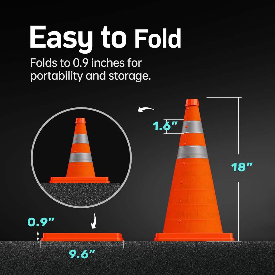 กรวยจราจรแบบพับได้ CITICITY ขนาด 18 นิ้ว สีส้ม พร้อมแถบสะท้อนแสง ใช้งานได้หลากหลายสำหรับจอดรถบนถนน
