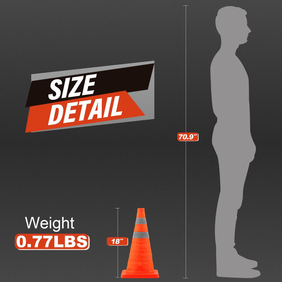CITICITY กรวยจราจรแบบพับได้ขนาด 18 นิ้ว กรวยป๊อปอัพอเนกประสงค์พร้อมปลอกสะท้อนแสงเพื่อความปลอดภัยบนท้องถนน