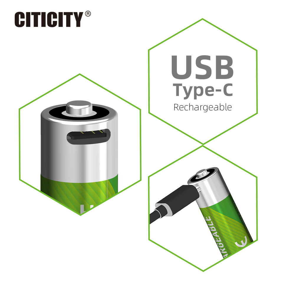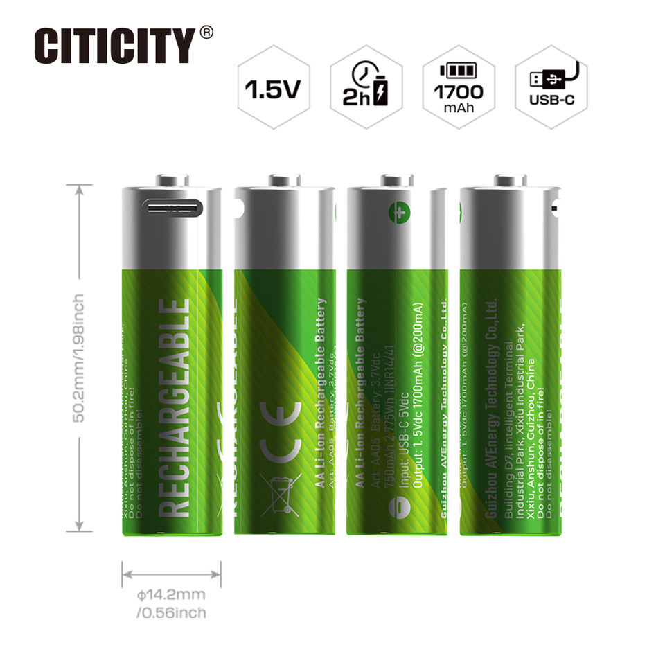 แบตเตอรี่แบบชาร์จไฟได้ CITICITY AA แพ็ค 4 ก้อน 1.5V 2775mWh 1200+ รอบการชาร์จ สำหรับของเล่นเด็กและอุปกรณ์อิเล็กทรอนิกส์