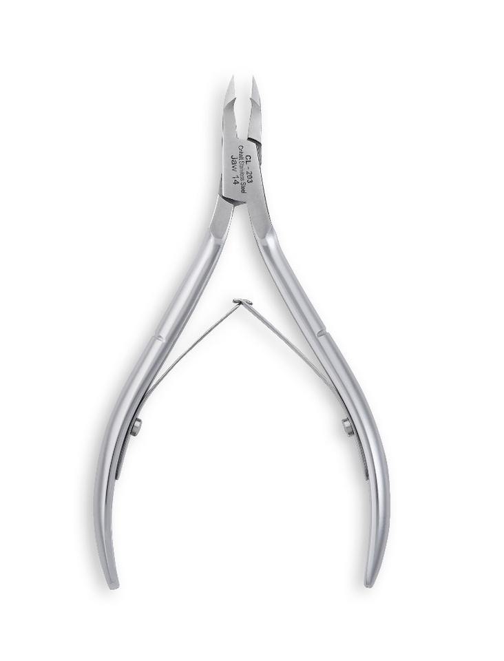คีมตัดหนังกำพร้าที่ทำจากสแตนเลสสตีล CL-203ชุบโครเมี่ยมสปริงคู่พร้อมขากรรไกรขนาด12/14/16ผลิตในเวียดนาม