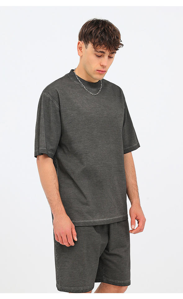 เสื้อยืด CL-26013 สตรีทแวร์สไตล์เรโทร วินเทจ สีซีดแบบโดนแดด น้ำหนัก 260 กรัม ทรงโอเวอร์ไซส์ แขนสั้น สวมใส่สบาย ผ้าคอตตอนหนา 100% คอกลม