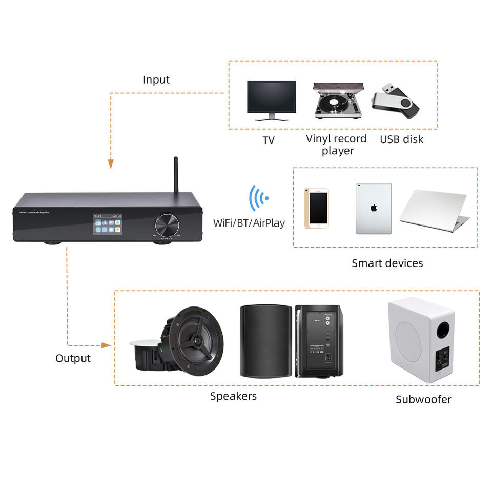 DSP, DAC Hi-Fi WIFI Stereo Audio Amplifier