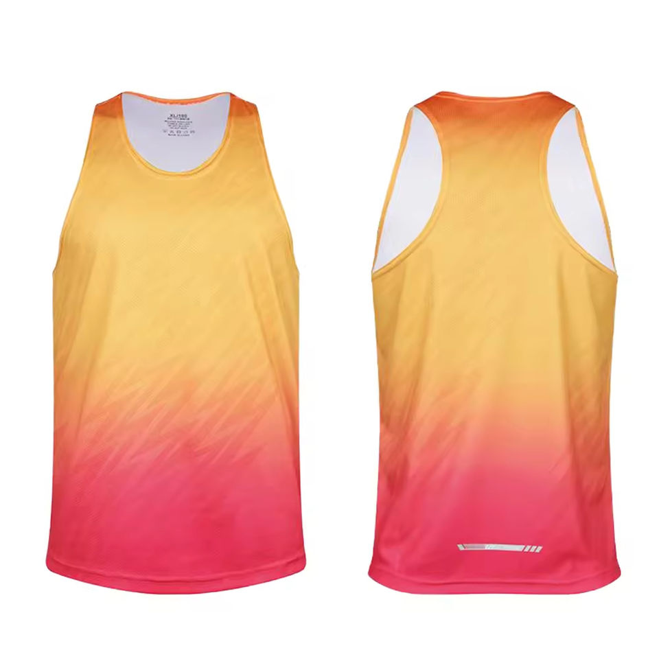 เสื้อกล้ามวิ่งมาราธอน CL065 แบบซับลิเมชั่นสั่งทำพิเศษ คอกลม ทรงปกติ แห้งเร็ว สะท้อนแสง ระบายอากาศได้ดี
