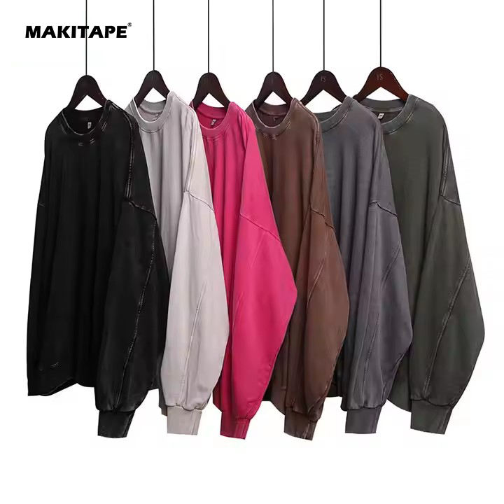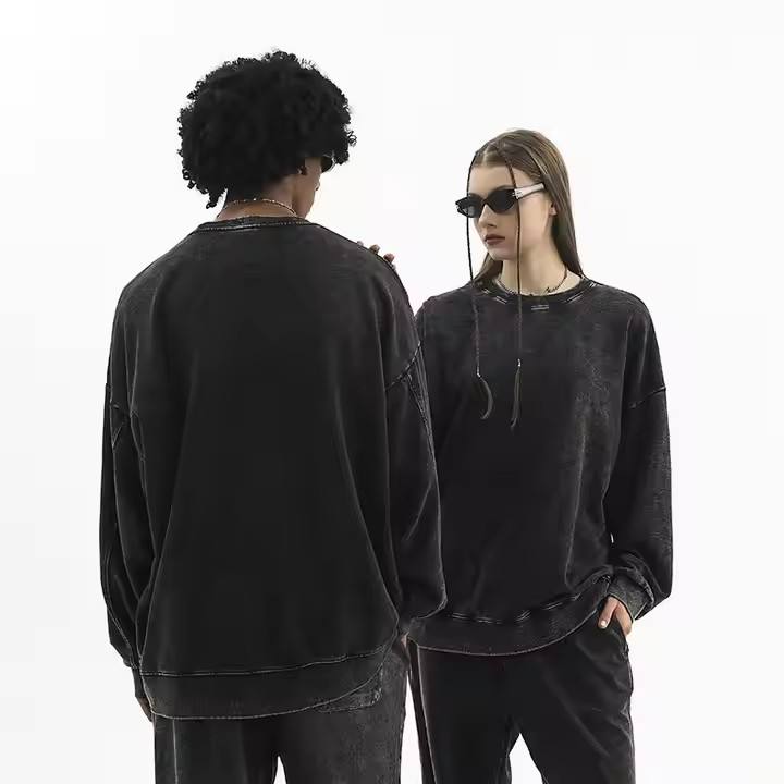 เสื้อสเวตเชิ้ตคอกลม CL350S 350G ผ้าฝ้ายเฟรนช์เทอร์รี่ สีดำล้าง ปักลาย 3 มิติ ไซส์ 5XL ทรงโอเวอร์ไซส์ พิมพ์ลายเรียบๆ สไตล์วินเทจ ระบายอากาศได้ดี