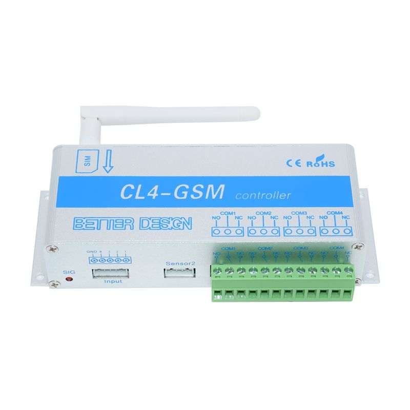 CL4-GSM-N/NC สวิตช์ควบคุมรีเลย์4ช่องสัญญาณ SMS App GSM สำหรับที่เปิดประตูรองรับอุณหภูมิความชื้นไฟ