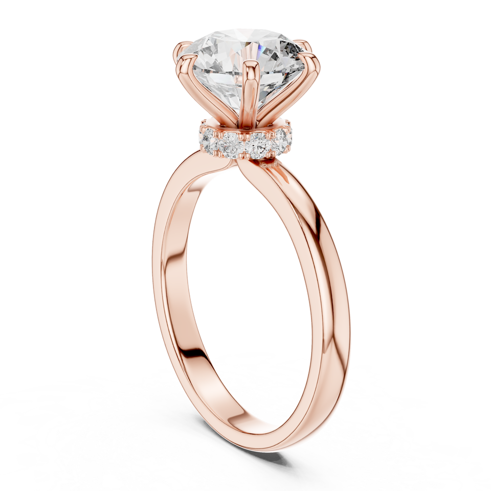 แหวนเพชรคลาสสิค 2 กะรัต เพชรเลี้ยงในห้องปฏิบัติการ ดีไซน์วงแหวนซ่อนรอบเพชร ทองคำขาว 18K ชุบโรเดียม รับรองโดย IGI เหมาะสำหรับเป็นแหวนหมั้น ของขวัญวันวาเลนไทน์