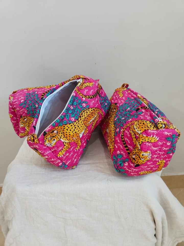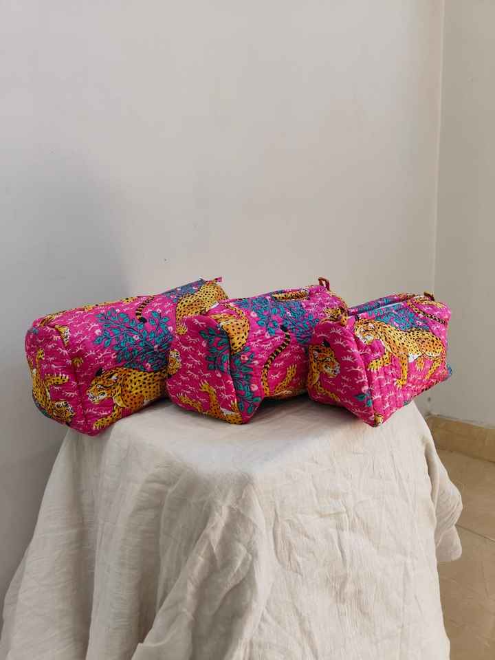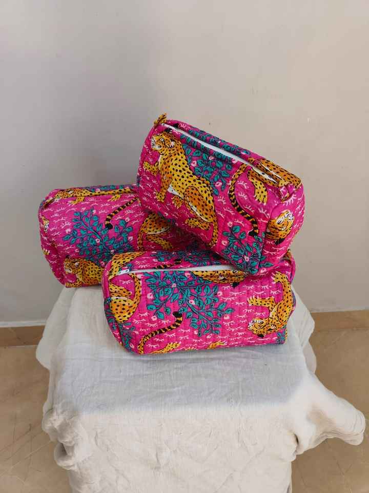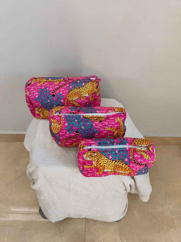 กระเป๋าเครื่องสำอางพิมพ์ลายดอกไม้ผ้าฝ้ายน้ำหนักเบาสำหรับเดินทาง พร้อมซิปปิด งานศิลปะและงานฝีมือคลาสสิก จากราชสถาน