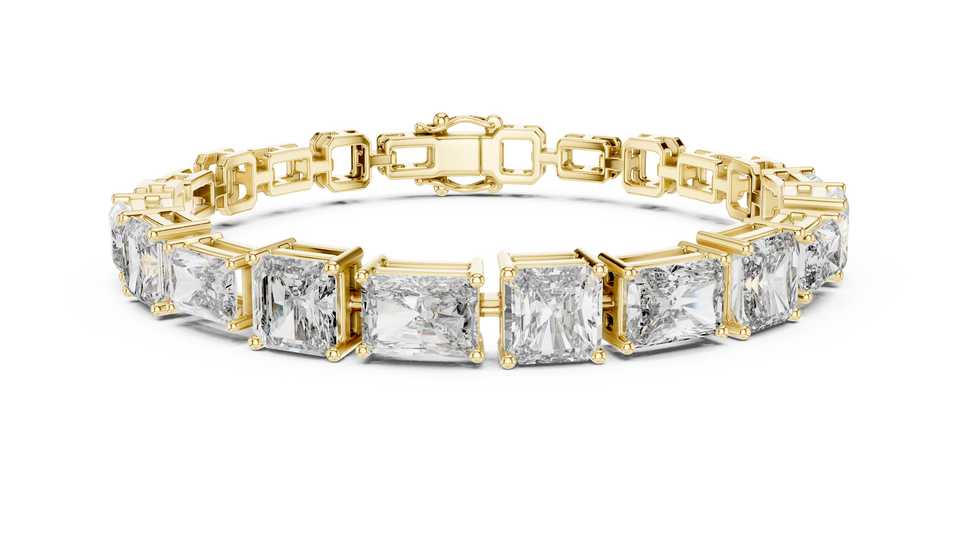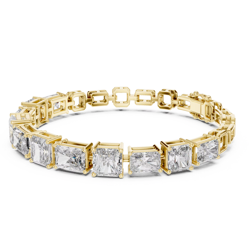 สร้อยข้อมือเพชรทรงเจ้าหญิงแบบเรเดียนท์ คลาสสิค แล็บโกรว์ สำหรับสุภาพบุรุษ ตัวล็อคคู่ ทองคำแท้ 18 กะรัต สีเหลืองทอง เหมาะสำหรับเป็นของขวัญ งานเลี้ยง หรือใส่ในชีวิตประจำวัน