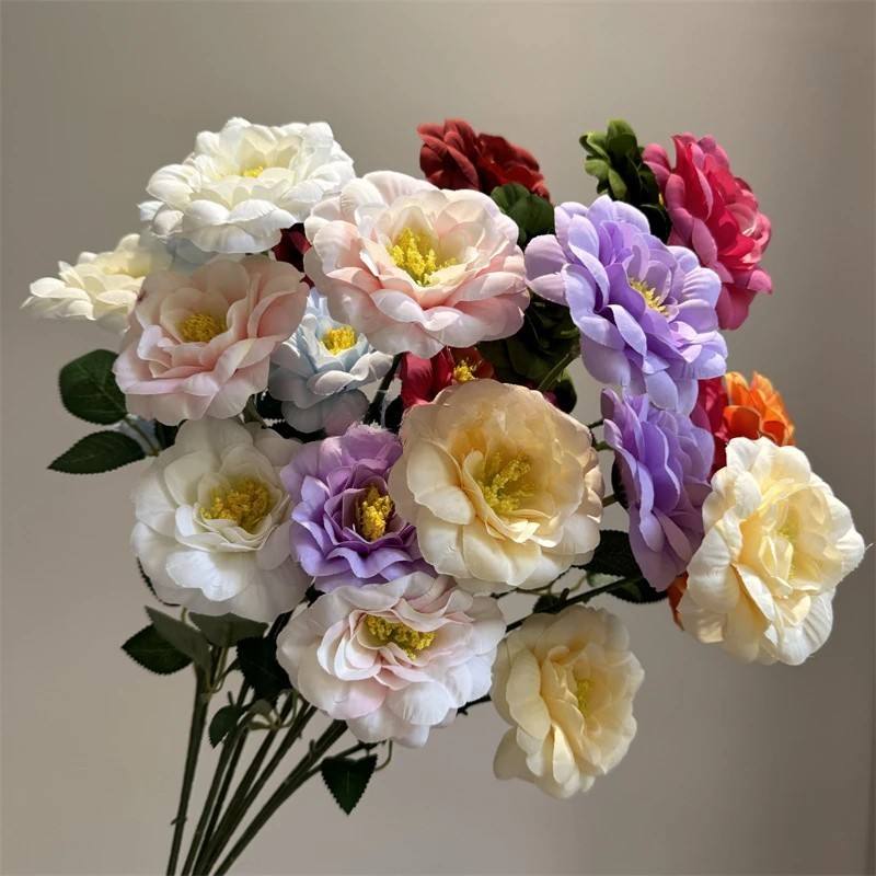 ชื่อผลิตภัณฑ์:ดอกชบาสามหัวการจัดดอกไม้ผ้าไหมสีชมพูสีขาว