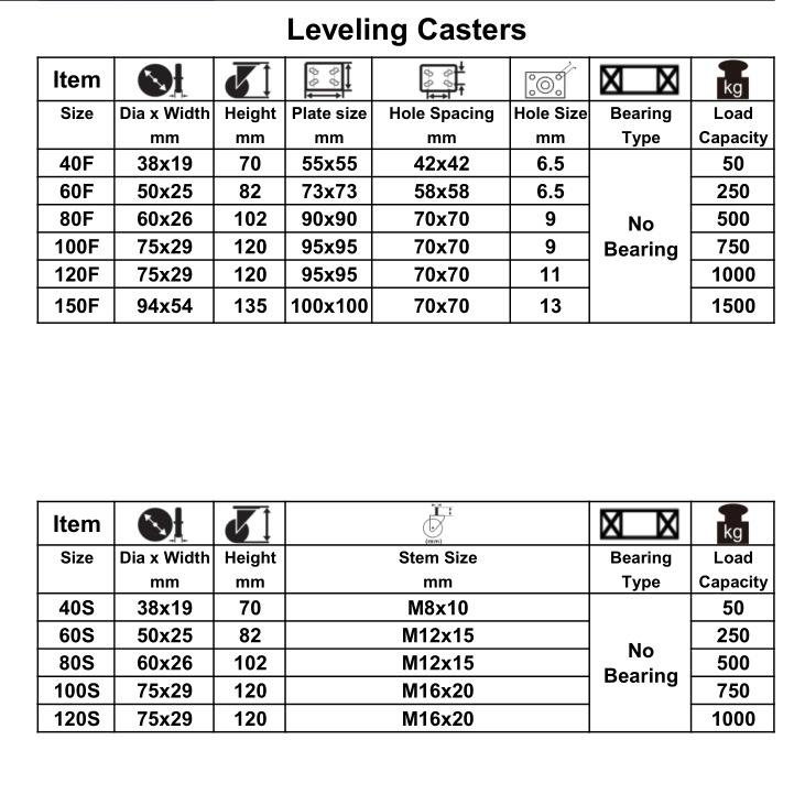 Leveling Caster Load Capacity:50/250/500/750/1000/1500kg