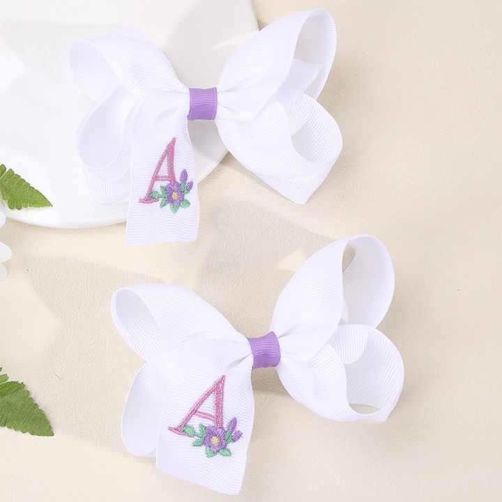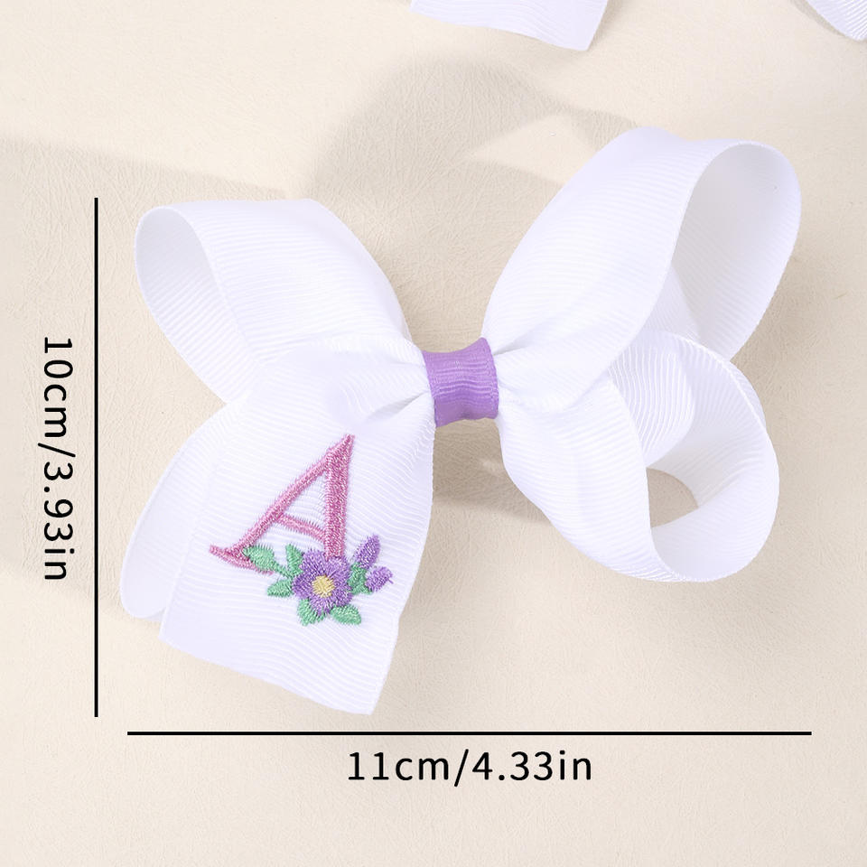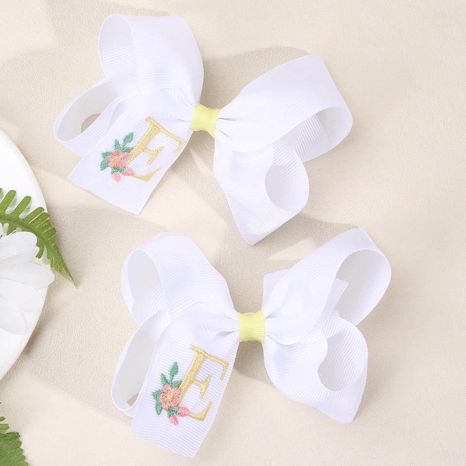 CN กิ๊บติดผมริบบิ้นผ้าต่วนบูติก2ชิ้นมีโบว์ปักลายดอกไม้สีพาสเทลคลิปติดผมตัวอักษรสำหรับเด็กผู้หญิง