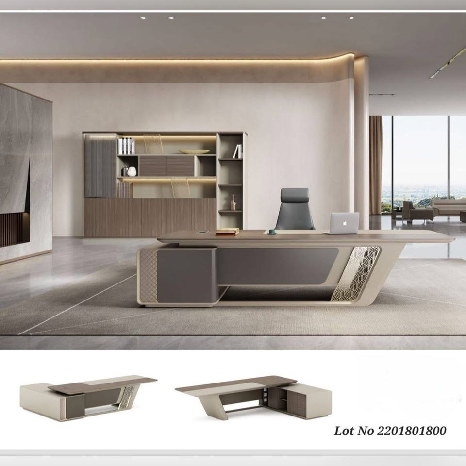 CNC Cutting Metal Grill Office Desk E1 Grade Plywood HPL Finish Executive Workstation with Storage Back Cabinet Set